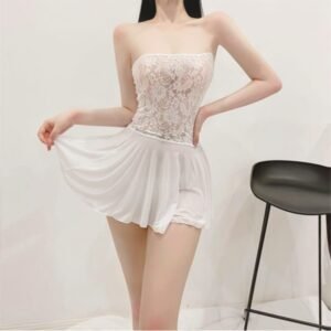 Aurora Charm – Stitched Satin Lace Tube Night Dress with Panty (Free Size)