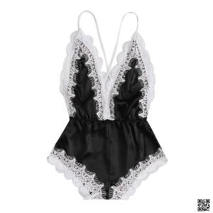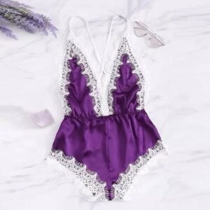 Velvet Desire – Premium Satin Lace Nightwear Bodysuit || Free Size